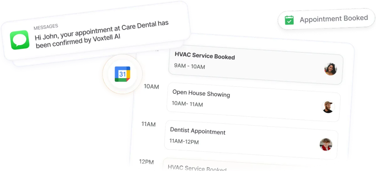 Voxtell AI syncs with your calendar to schedule property tours and listing appointments without the back-and-forth.
